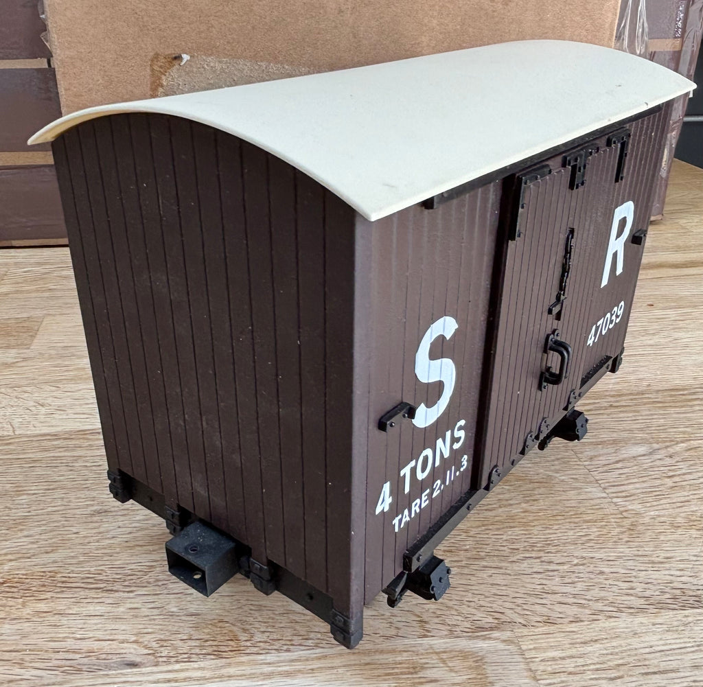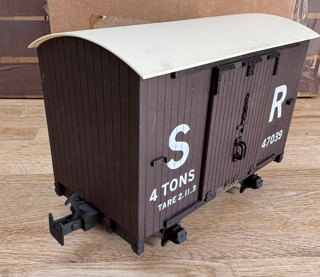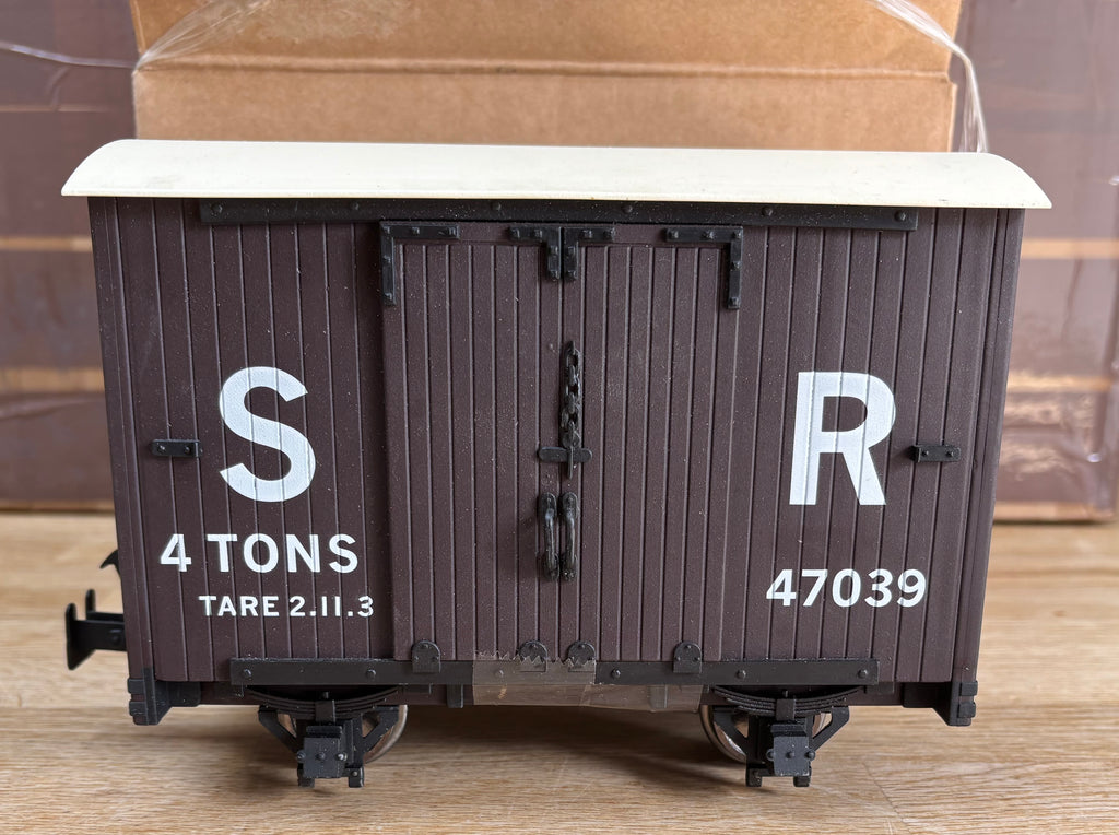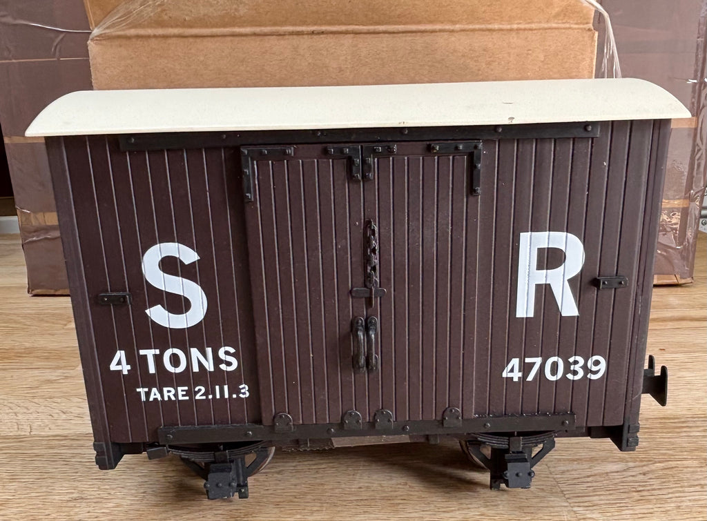 Here we have an Accucraft 16MM scale L&B 4 wheel van, Brown in colour lettered for the SR number 47039.