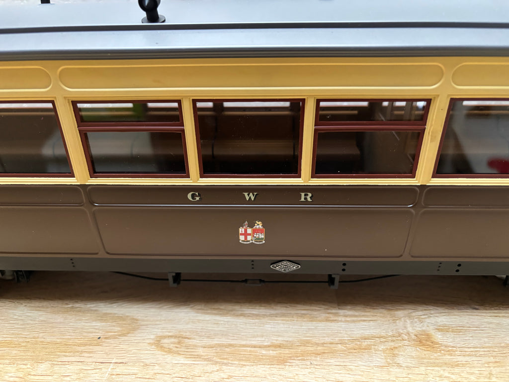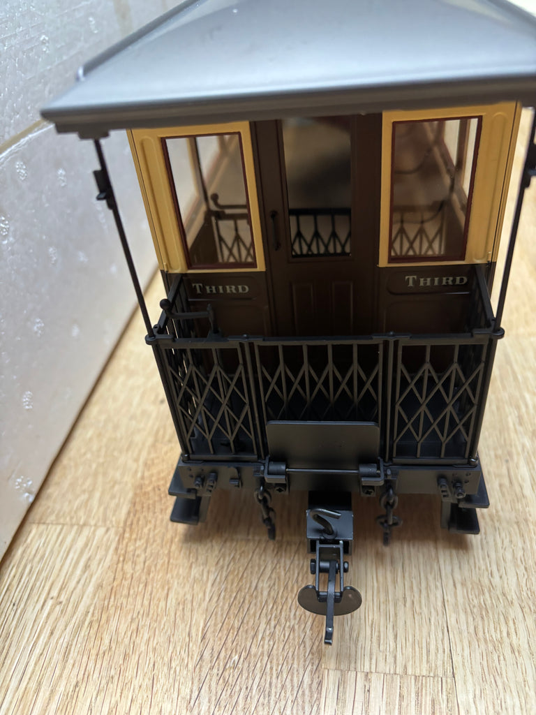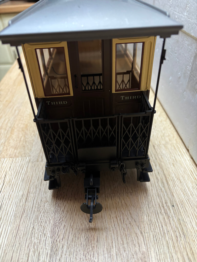 Here we have an Accucraft 16mm scale, 32mm gauge Welshpool & Llanfair 3rd class Saloon coach Pickering Coach.