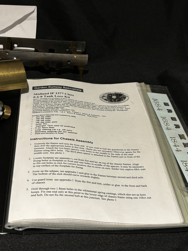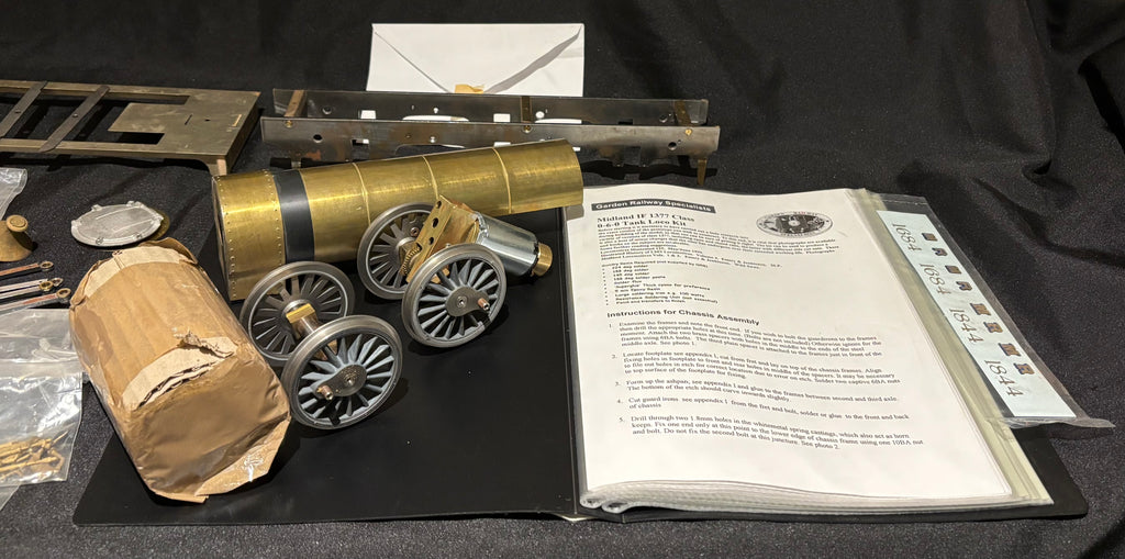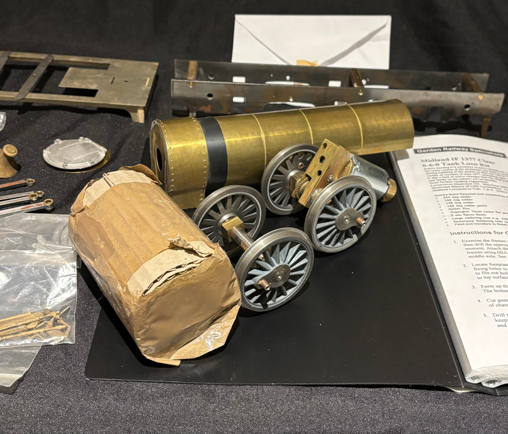 Here we have a part built kit from GRS for a gauge 3/G64 Midland Railway 1F 0-6-0 tank engine.